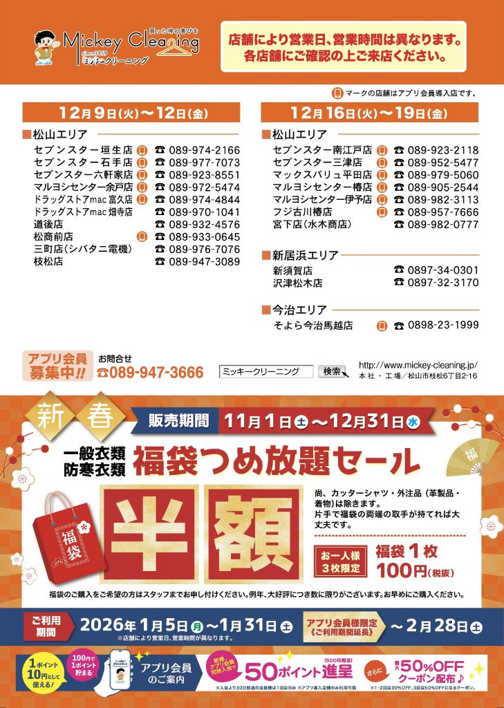 ミッキークリーニングでは、『毎年恒例の年末まとめ洗いキャンペーン』を開催いたします❗️❗️