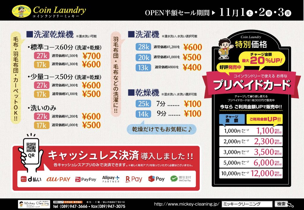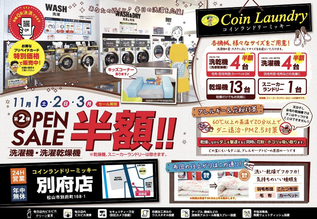 コインランドリーミッキー別府店オープンセール第2弾!!