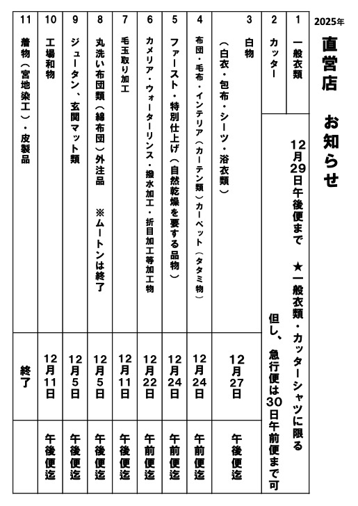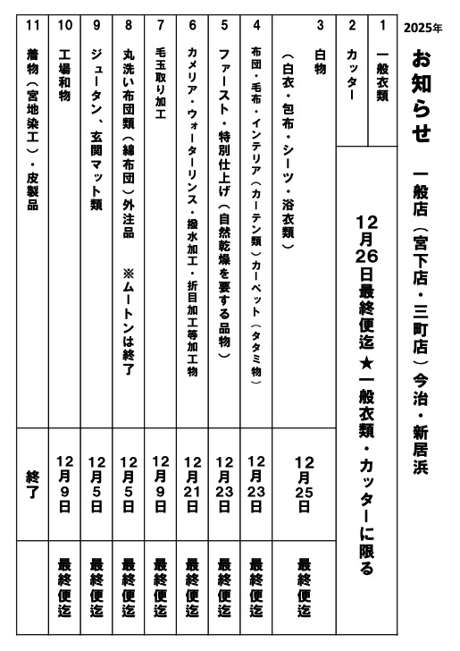 年内仕上がり最終受付日のお知らせ